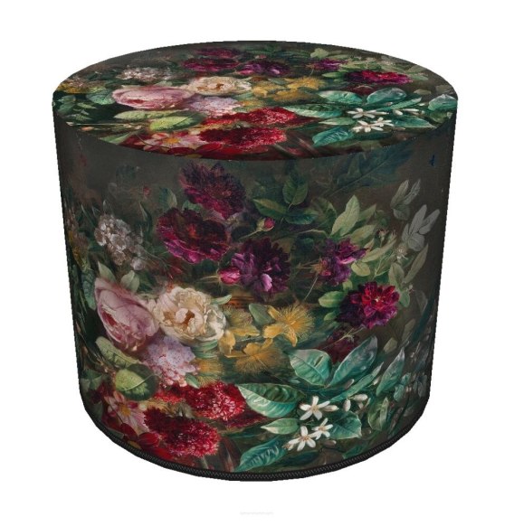 Pufa welurowa, Bertoni, nadruk Bukiet - okrągła pufa dekoracyjna, do salonu, walec 40cm, elegancka, zamek błyskawiczny